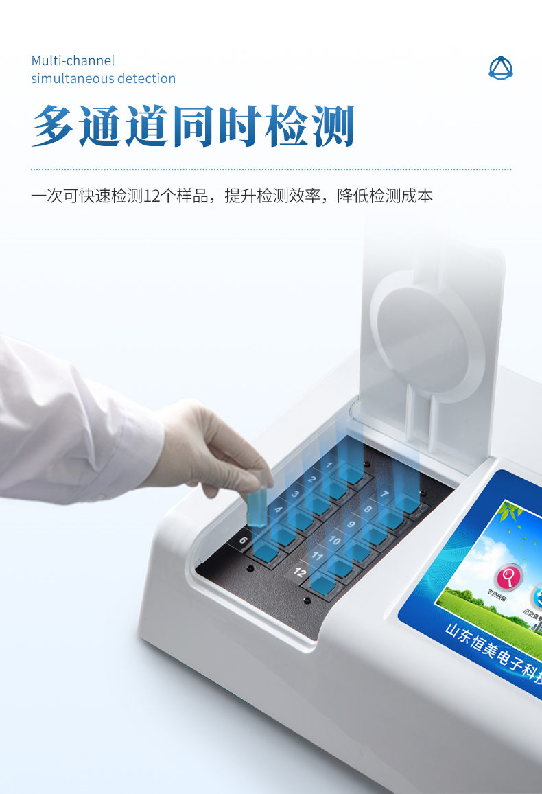 3、12个检测通道(固态化设计),一次性可快速检测6个样品,极大提升检测效率,降低检测成本。